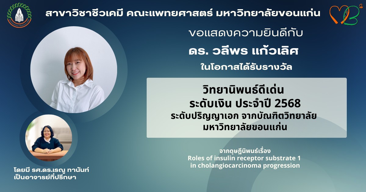 จากดุษฎีนิพนธ์เรื่อง "Roles of insulin receptor substrate 1 in cholangiocarcinoma progression"